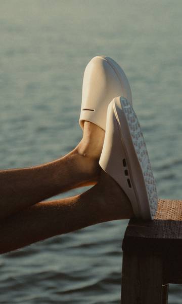 The FS-Slide is our solution to post round leisure. Slip into this modern mule inspired slide with effortless style for maximum comfort. Crafted sustainably, the three piece construction was engineered for durability, traction, comfort, and an unmatched lounge experience.